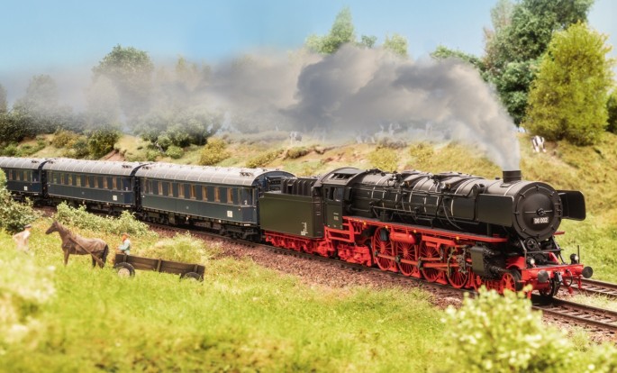 Märklin und TRIX setzen die Pläne von damals ins die Realität um und bringen die 06er als Modell frühen Epoche 3. Dabei wurde vor allem viel Wert auf die Ausführung des langen Fahrwerkes gelegt. Nach einigen Problemen mit dem Fahrwerk der verkleideten 06 001 vor einigen Jahren, geht nun ein Modell mit völlig neu konstruiertem Fahrwerk in Serie das auch das Durchfahren von kleinen Radius 1 (360 mm) ermöglicht!.
