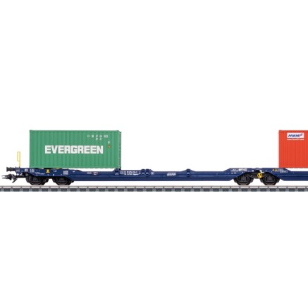 Doppel-Taschenwagen der Bauart SdggmrssS269 (T3000e) der VTG AG. Das Modellerscheint mit unterschiedlichen Beladungen und Betriebsnummern bei Märklin und TRIX