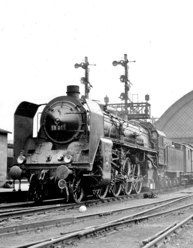 Schon als 19 011 bezeichnet aber noch mit Pressgasbeleuchtung, steht die die Lok 1928 in Dresden zur Abfahrt bereit. © Slg. Eisenbahnstiftung